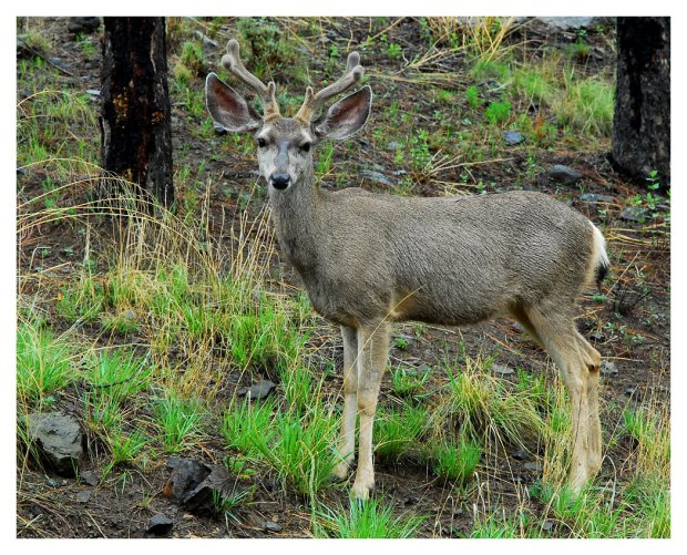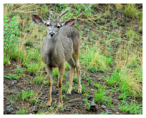 Three White Tail bucks roaming just beyond the patio-deck this morning. Their hides were wet… it had been raining for several hours.