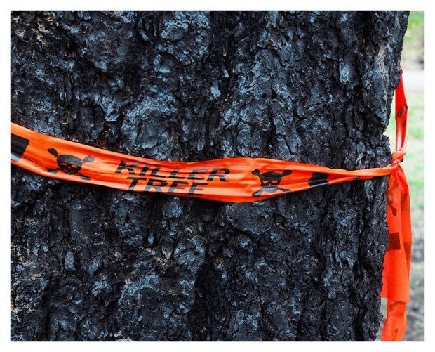 This is the charred trunk of a massive Pondarosa Pine tree that had been tagged “killer tree” by the forest service and slated for immediate removal. About 80% of the base of the tree had been destroyed by the Little Bear fire of June 2012 north of Ruidoso, New Mexico. The 80 feet tall sentinel of the forest was in danger of imminent collapse.