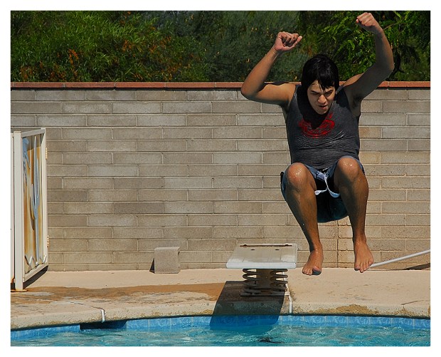 And the “after” was very wet! He creates a wake the full width of the pool… and no one is safe within a couple yards of the pool edge!