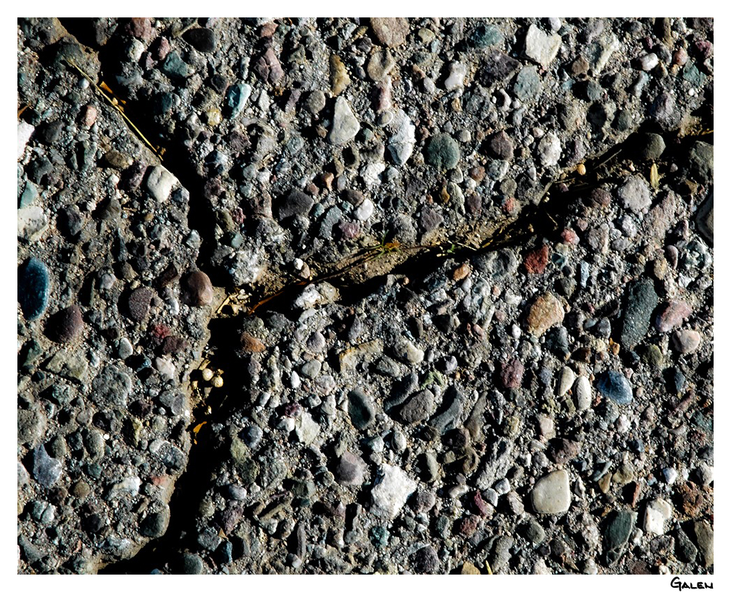 Detail: Crack in asphalt chip seal…