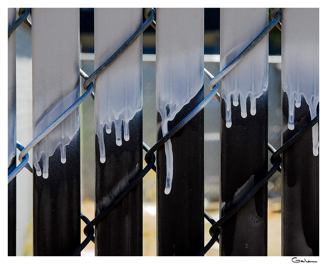Paint drips on chain link slatted fence… Tucson Arizona USA
